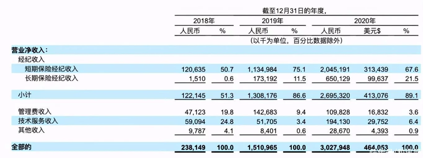 保险佣金收入是水滴公司的主要收入来源,占89.1%。水滴在2020年实现超过144亿元的首年保费(FYP),截至2020年12月31日,累计服务的保险用户数量约为7940万人,累计付费保单数达到3070万张。水滴保2018年、2019年和2020年分别实现了9.73亿、66.68亿和144.26亿的首年保费收入,带给水滴公司的营收分别为1.22亿、13.08亿和26.95亿。