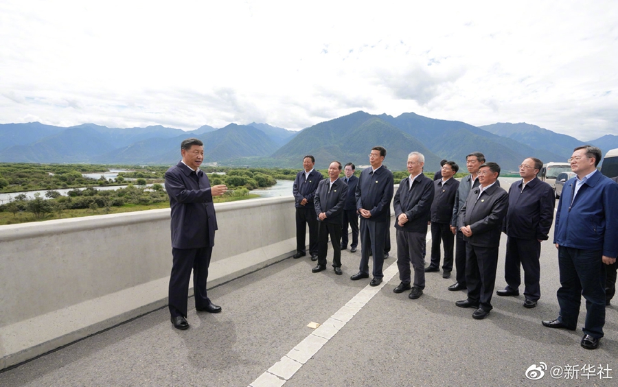 习近平总书记21日赴西藏考察调研。当天上午,习近平乘坐飞机抵达林芝米林机场,受到西藏各族干部群众热烈欢迎。随后,他乘车来到尼洋河大桥,了解雅鲁藏布江及尼洋河流域生态环境保护等情况。当天下午,习近平先后来到林芝市城市规划馆、巴宜区林芝镇嘎拉村、工布公园,考察城市发展规划、乡村振兴、城市公园建设等工作。22日上午,习近平来到林芝火车站,了解川藏铁路总体规划及拉萨至林芝段建设运营等情况,随后乘火车前往拉萨市,实地察看拉林铁路沿线建设情况,深入研究有关问题。(文字记者张晓松、朱基钗;摄影记者李学仁、谢环驰、申宏、燕雁)