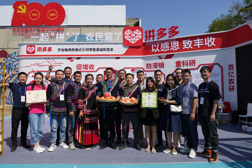 9月23日,来自革命老区、脱贫地区的拼多多新农人,将家乡丰收的喜悦带到了嘉兴南湖的丰收节主会场。受访方供图