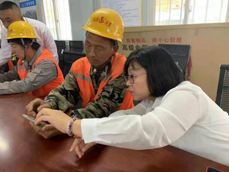 工作人员指导农民工使用电子合同。来源:受访方供图