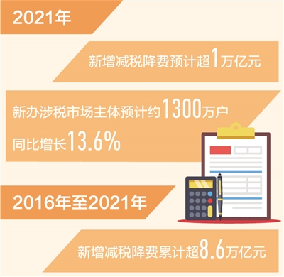 “2021年,税务部门统筹推进减税降费和组织收入,圆满完成预算确定的收入任务,更好激发市场主体活力、保障国家财力,全年新增减税降费预计超1万亿元。”国家税务总局主要负责同志在近日召开的全国税务工作会议上表示,2016年至2021年新增减税降费累计超8.6万亿元,宏观税负由2012年的18.7%预计降至2021年的15.2%左右。2021年以来,减税降费政策继续发力,助企减负纾困取得积极成效。
