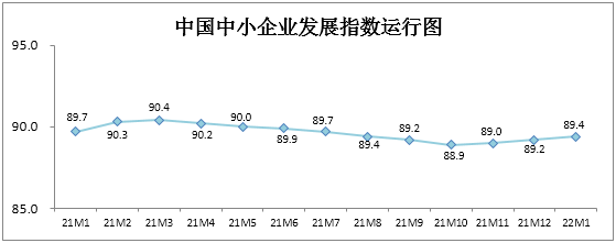 人民网北京2月14日电 (申佳平)据中国中小企业协会消息,2022年1月中国中小企业发展指数为89.4,按可比口径环比上升0.2点,连续3个月上升。