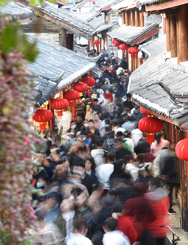 1月24日,游人在云南丽江古城游玩。新华社发(赵庆祖 摄)