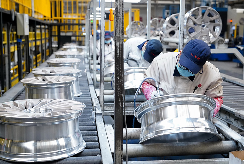 2月12日,工人在秦皇岛经济技术开发区一家车轮企业的生产车间工作。新华社记者 杨世尧 摄