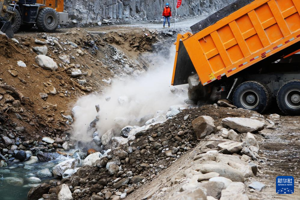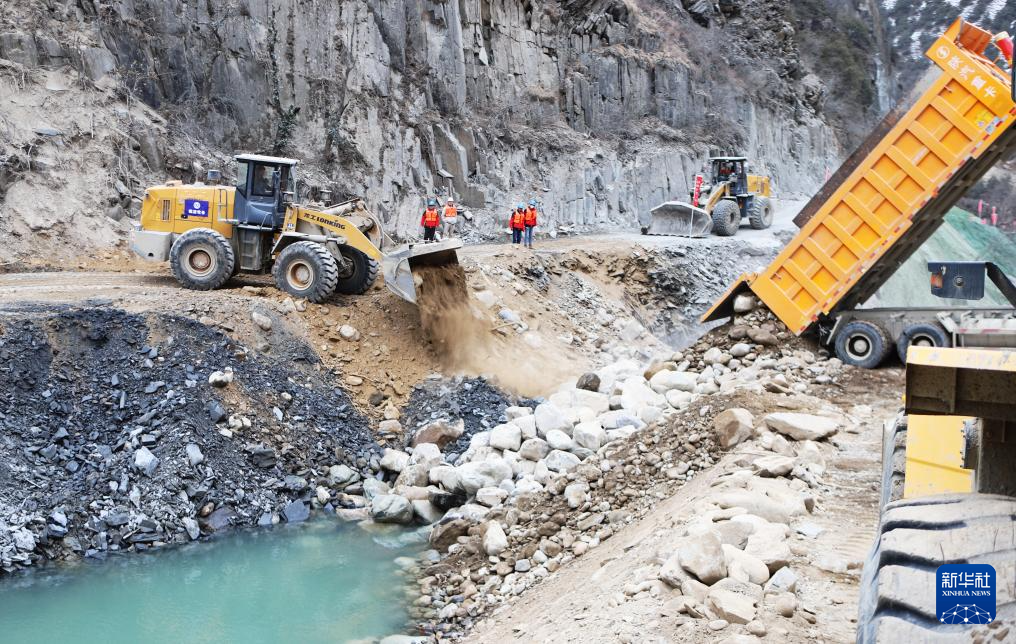 大唐扎拉水电站截流施工现场(1月3日摄)。新华社记者 关明辉 摄