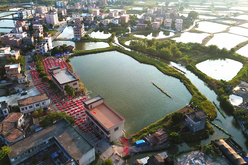 这是入选2020年度世界灌溉工程遗产名录的桑园围(2019年10月3日摄,无人机照片)。新华社发(中国国家灌排委员会供图)