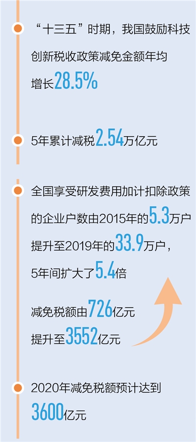 “十三五”时期我国鼓励科技创新税收政策累计减税2.54万亿元